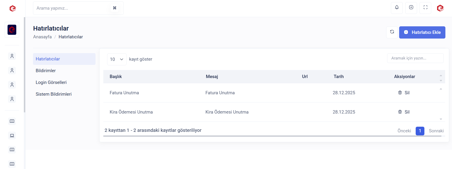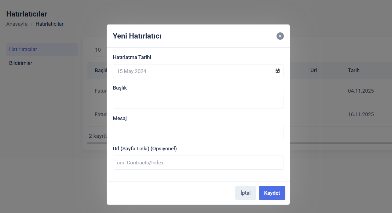 Bildirimler ve Hatırlatıcılar Yönetimi