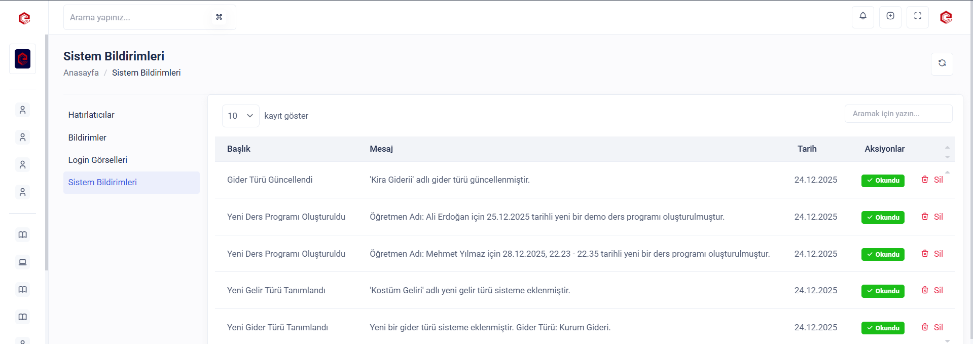 Başarılı bir eğitim kurumu yönetimi, doğru bilginin doğru kişiye doğru zamanda ulaşmasıyla mümkündür. Edu EMS Bildirim ve Hatırlatıcı Yönetimi Modülü; yöneticiler, eğitmenler ve öğrenciler arasındaki iletişim kopukluklarını ortadan kaldırarak kurumsal süreçlerin aksamadan ilerlemesini sağlar.