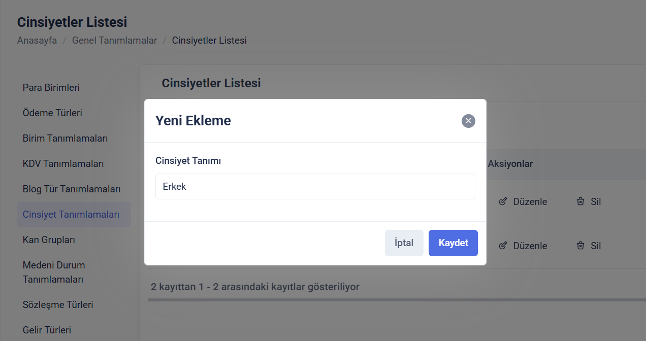 Cinsiyet Tanımlaması Ekleme ve Düzenleme