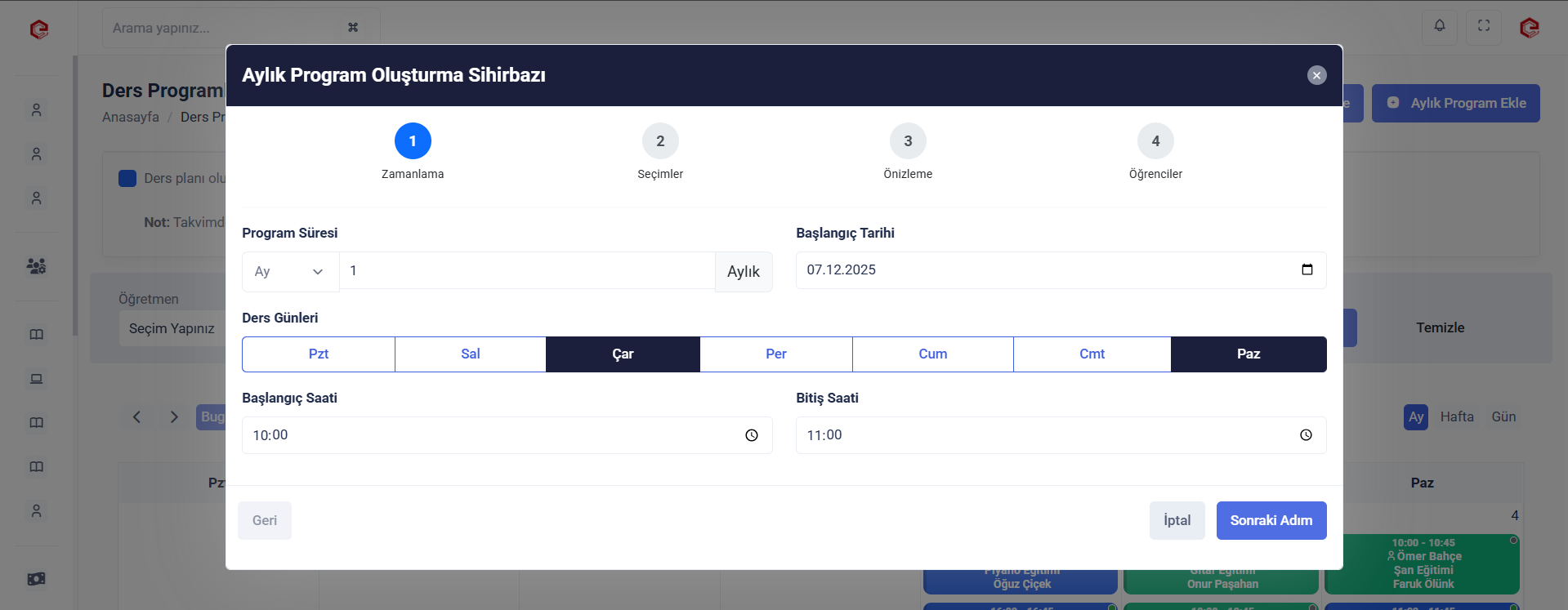 Aylık/Haftalık Program Oluşturma