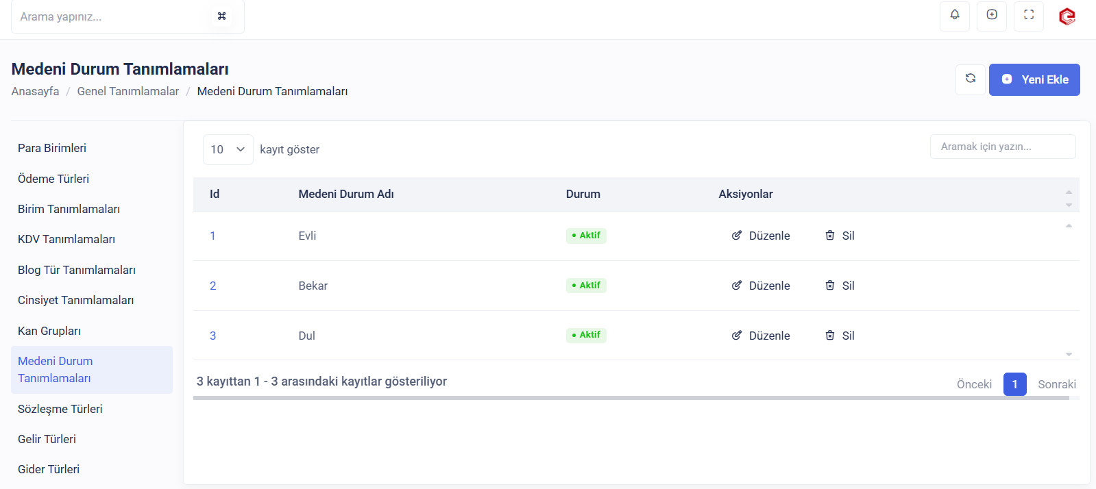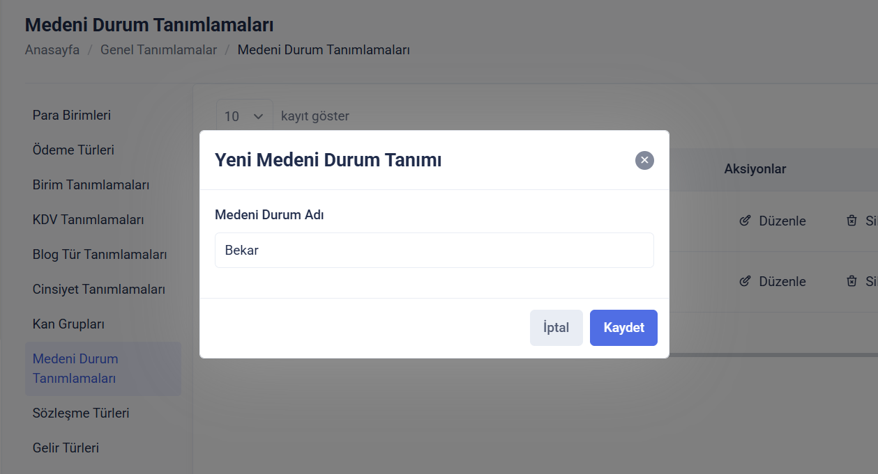 Medeni Durum Tanımlaması Ekleme ve Düzenleme